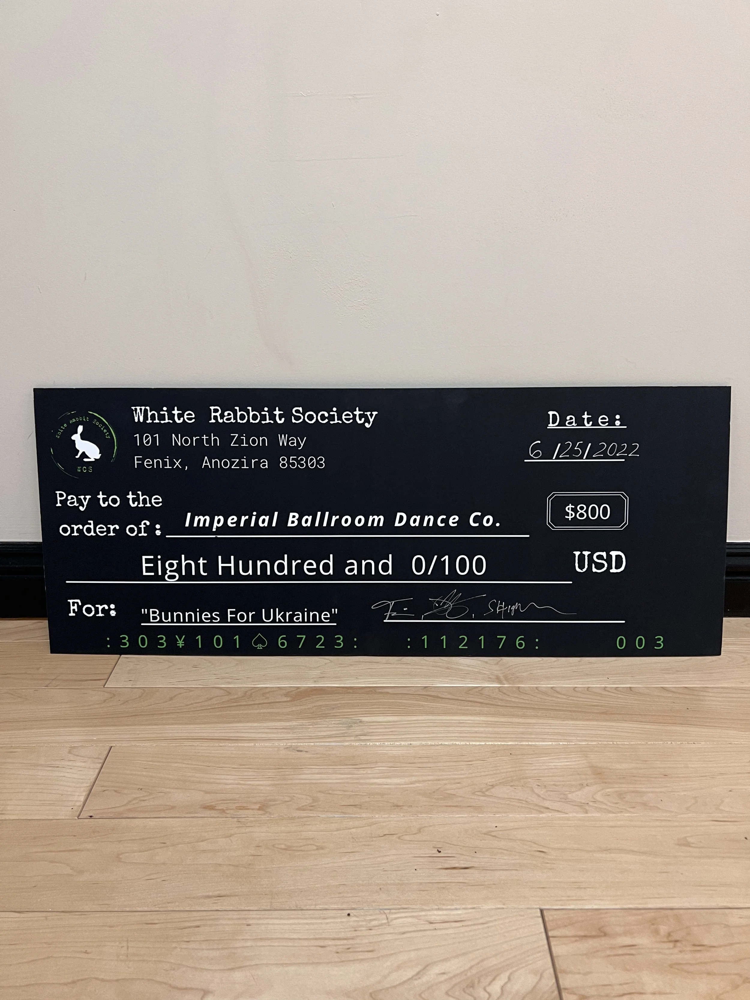 On June 25, 2022 The White Rabbit Society held a West Coast Swing event called “Bunnies for Ukraine.” This event raised and donated $800 to You Are The Angel; a non profit organization that helps deliver food, medical supplies, transportation, and evacuation for the people of Ukraine. The money went to a mini van which helped take Ukrainian people from a city called Mariupol to a city called Zaphorizhia, Ukraine for safety.